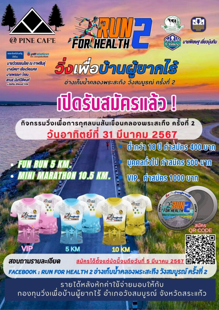 สมัครเลย ขอเชิญร่วมการแข่งขันวิ่งเพื่อการกุศล “RUN FOR HEALTH 2 วิ่งเพื่อบ้านผู้ยากไร้ อ่างเก็บน้ำคล